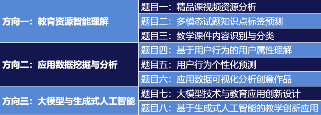 本次竞赛聚焦于教育资源的智能理解、应用数据挖掘与分析、以及大模型与生成式人工智能三个方向,共设有8个挑战性课题(赛道),每个课题均包含初赛和复赛两个阶段。活动面向国内的高等院校、科研院所、教育组织以及科技企业开放。大赛的组委会由郑志明院士担任主任,汇集了来自各高校和科技企业的40余名专家学者,制定了一套全面的评审规则。此次比赛是国内大数据和人工智能领域最具权威性和代表性的赛事之一。