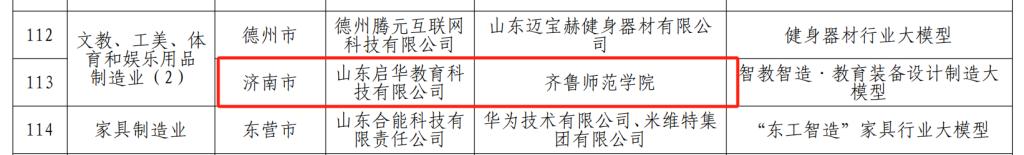 近日,山东省工业和信息化厅公示2025年工业领域行业大模型“揭榜挂帅”攻关项目名单,人工智能教育研究院与山东启华教育科技有限公司联合申报的“智教智造教育装备设计制造大模型”成功入选。该项目聚焦教育装备设计制造领域,通过人工智能大模型技术赋能传统产业,助力教育装备行业智能化升级。 “智教智造教育装备设计制造大模型”旨在构建覆盖教育装备研发、设计、生产、管理全流程的智能化解决方案。